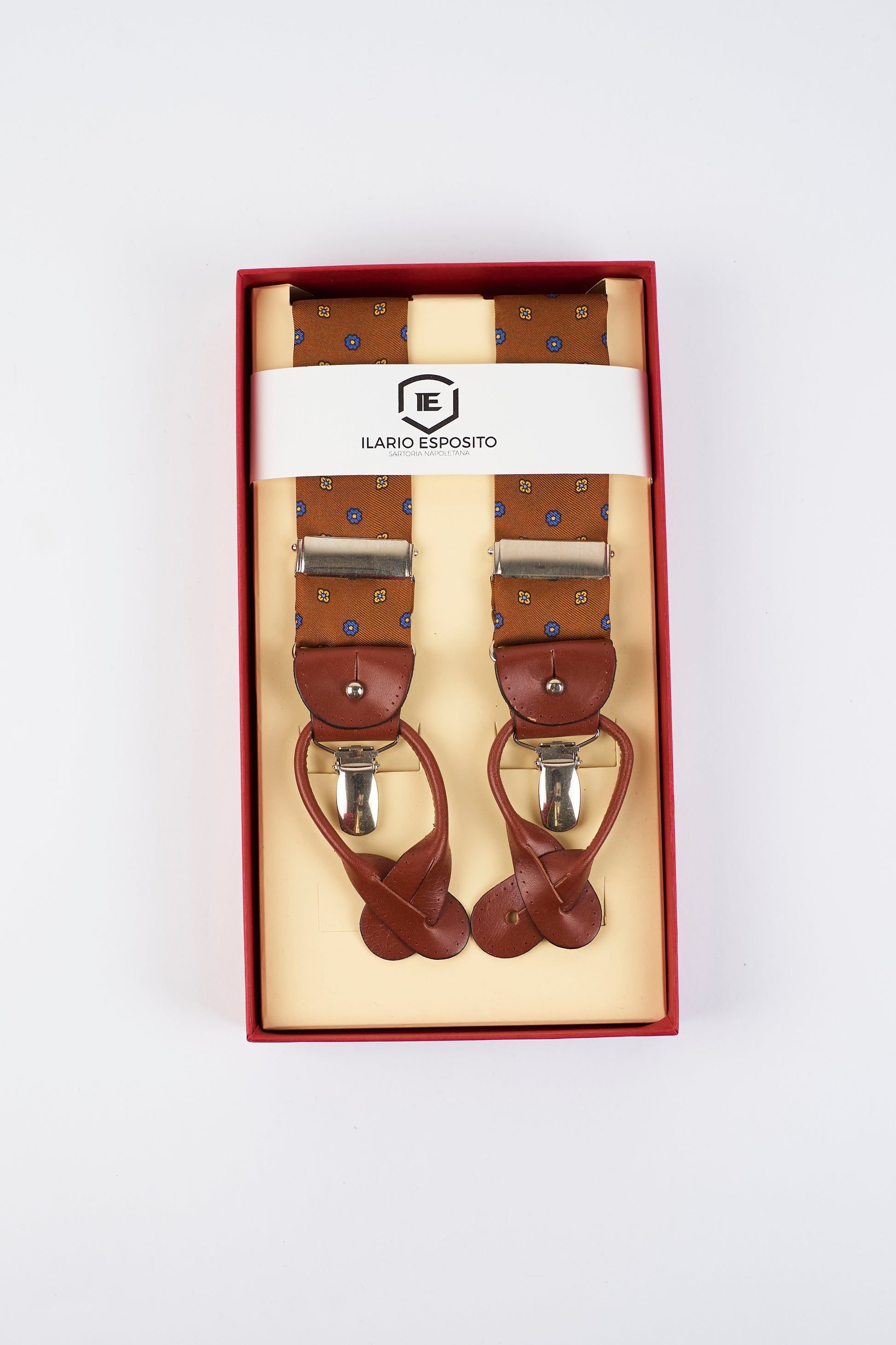 Raffinate, ricercate e perfettamente equilibrate tra stile classico e tocco creativo: le bretelle in seta mareo e con fantasia floreale firmate Ilario Esposito sono l’accessorio ideale per l’uomo che desidera distinguersi con eleganza. Realizzate a mano in Italia con pura seta di alta qualità, presentano una fantasia a piccoli fiori che dona personalità senza risultare eccessiva. Un capo che esalta il gusto sartoriale napoletano, perfetto per cerimonie, eventi formali o look creativi da tutti i giorni.