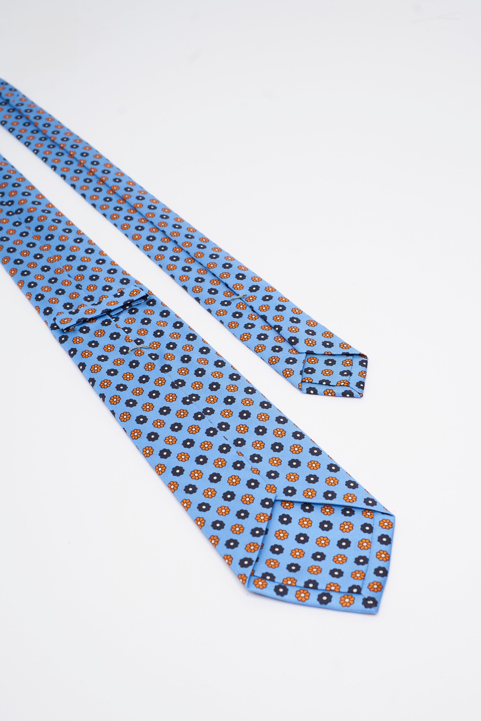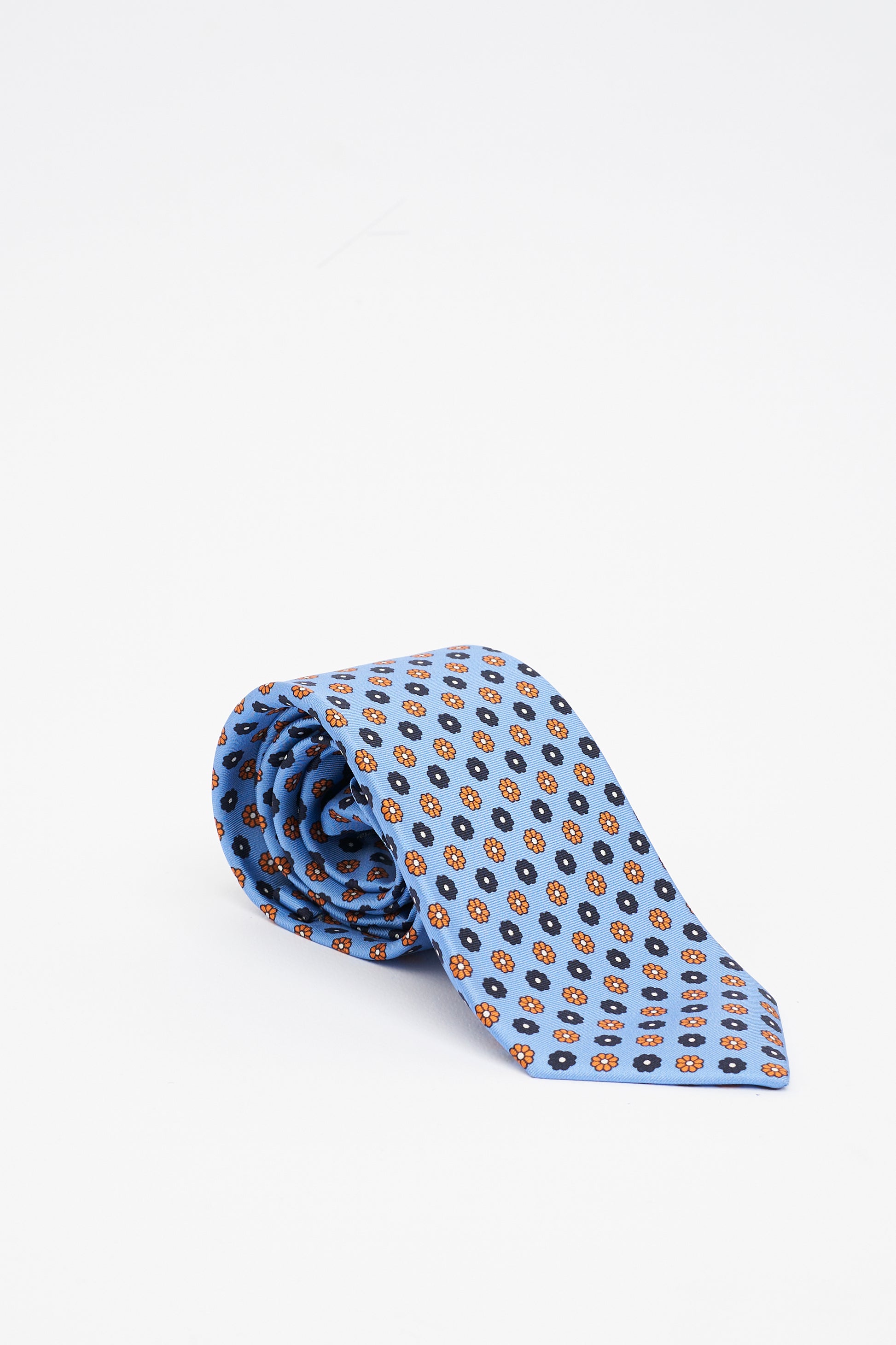 Cravatta in Seta Azzurra con Motivo a Fiori Piccoli