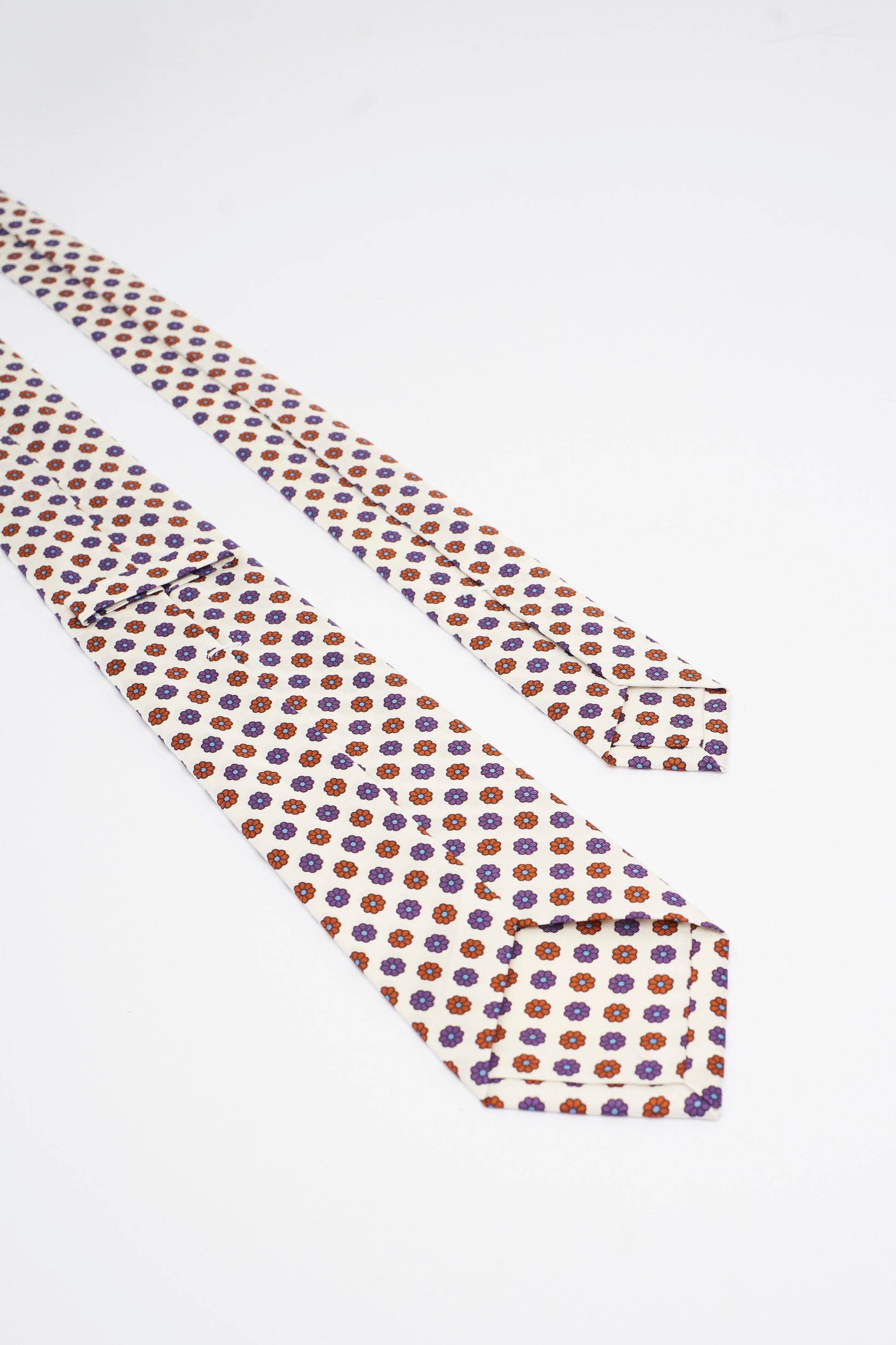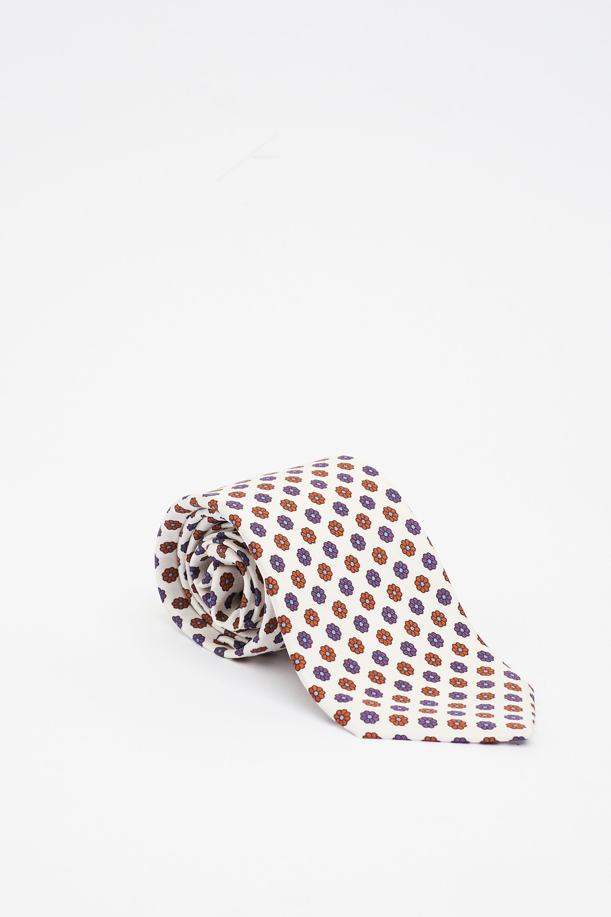 Cravatta in Seta Bianca con Motivo a fiori Geometrici