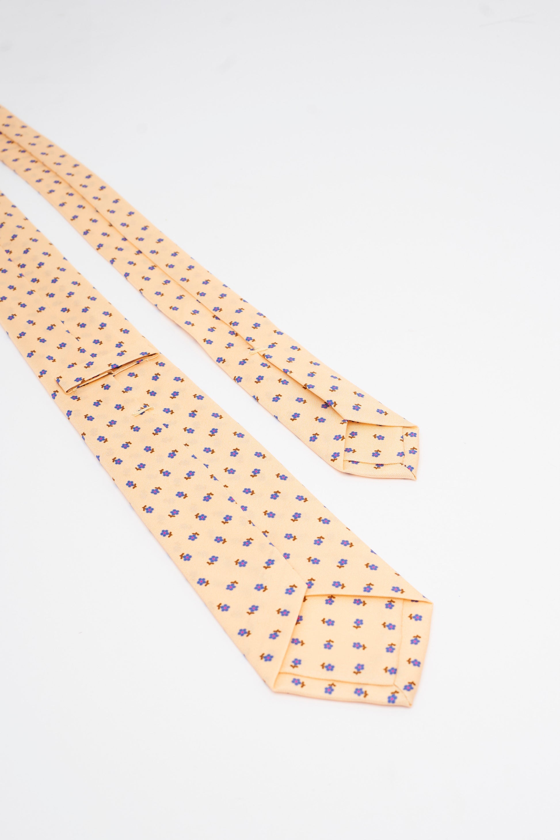 Questa cravatta sartoriale in pura seta di Como color crema è arricchita da un raffinato motivo a piccoli fiori blu che aggiunge un tocco di colore discreto e stile elegante al look. La tonalità calda si sposa armoniosamente con i dettagli blu per un accessorio versatile e sofisticato. La lavorazione a 7 pieghe garantisce struttura e durata, mentre il filo di tensione assicura una vestibilità impeccabile nel tempo.