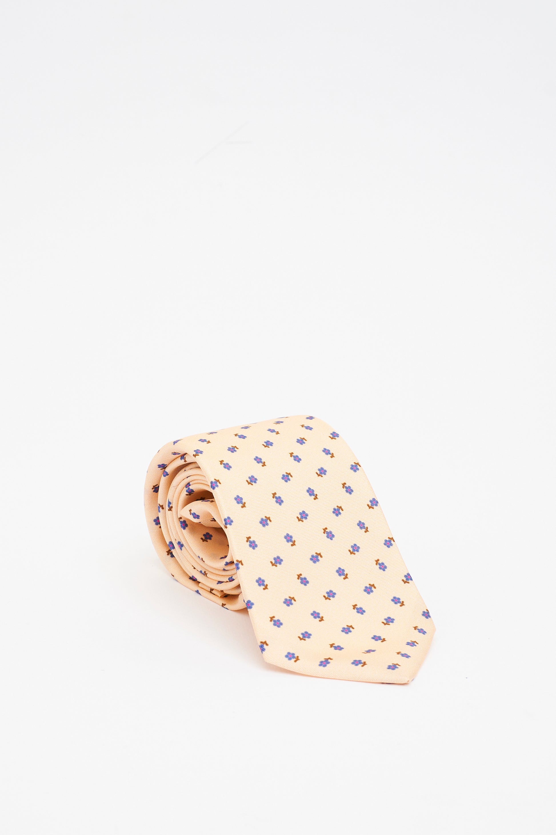 Cravatta in Seta Color Crema con Motivo a Fiori