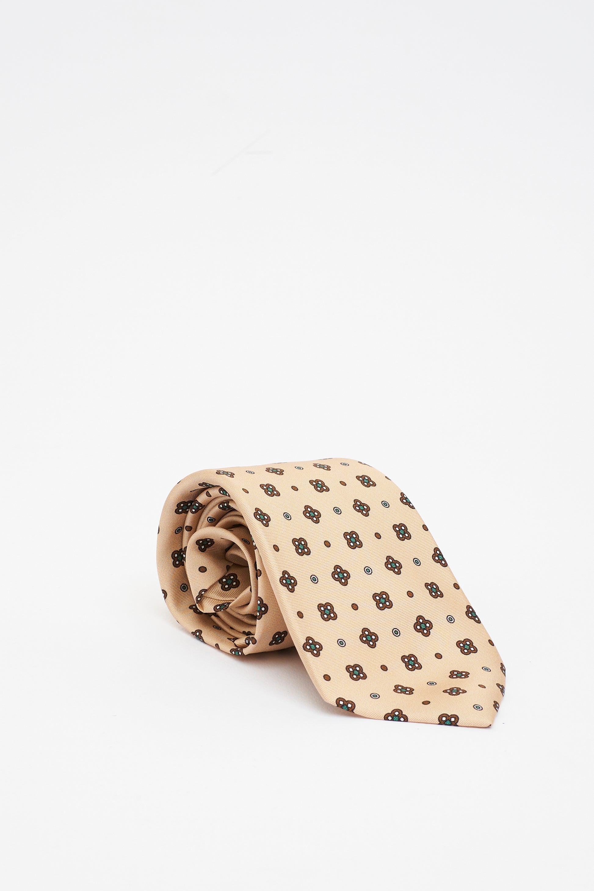 Cravatta in Seta Color Crema con Motivo a fiori Geometrici