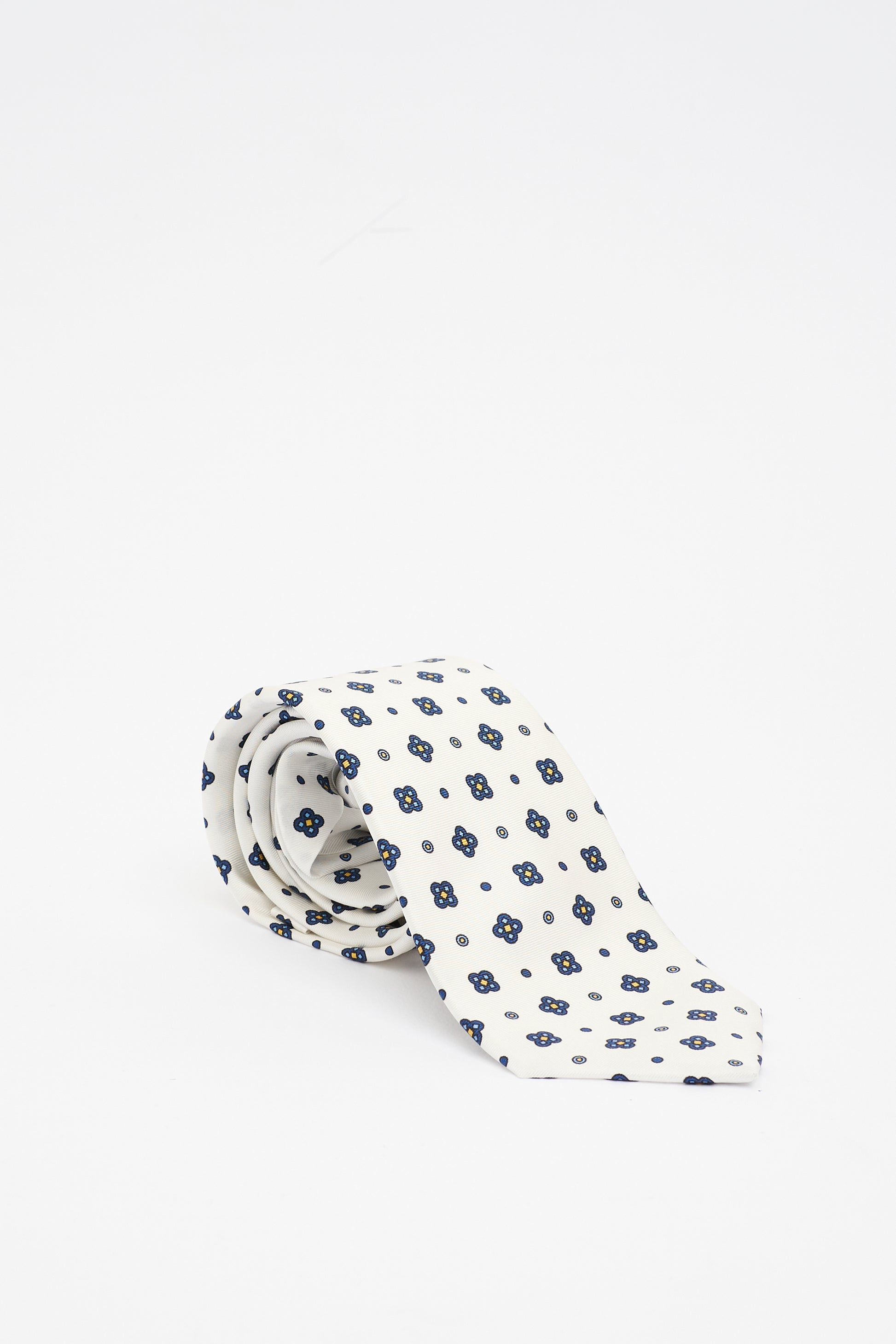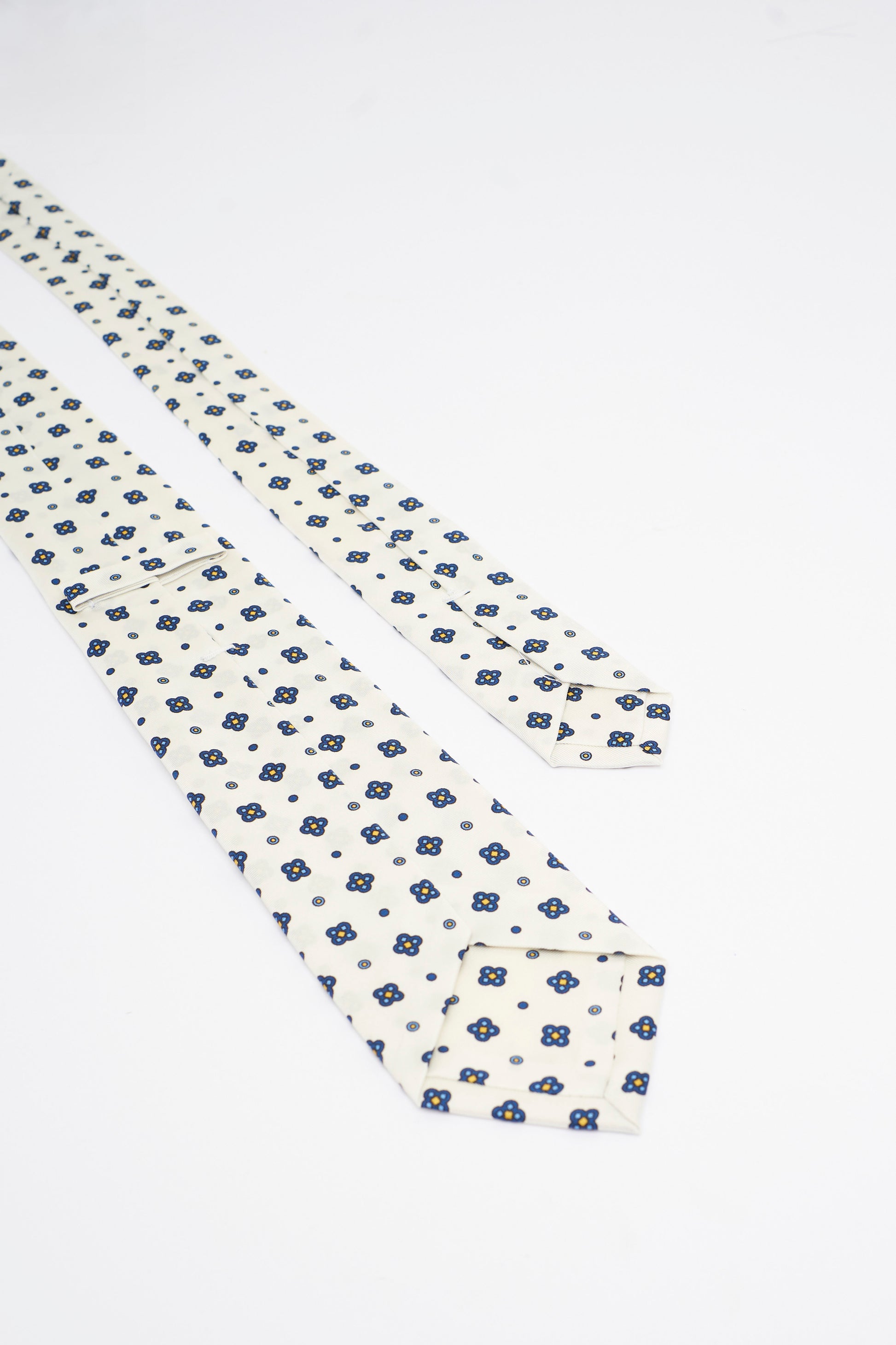 Cravatta in Seta Panna con Motivo a Fiori Blu
