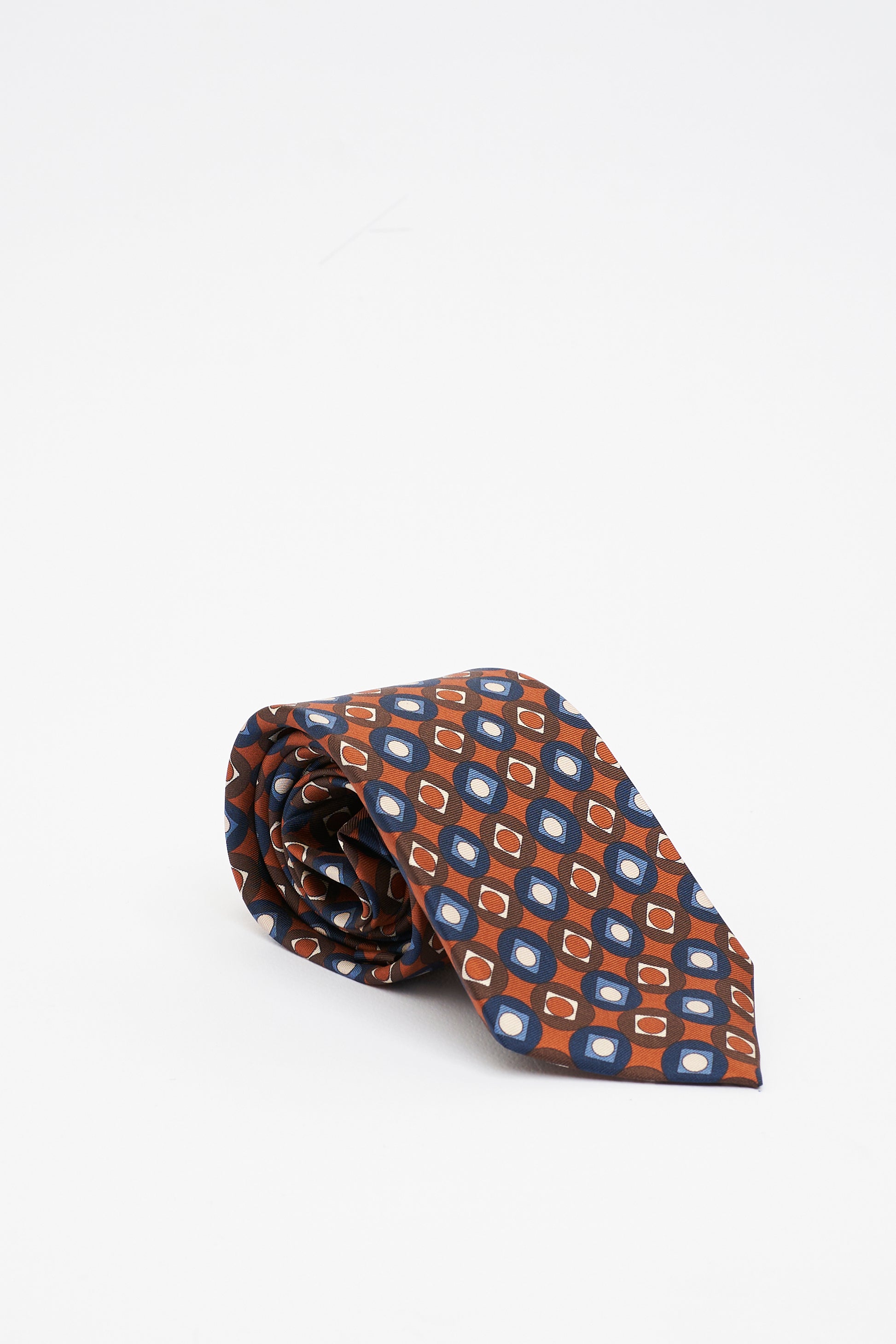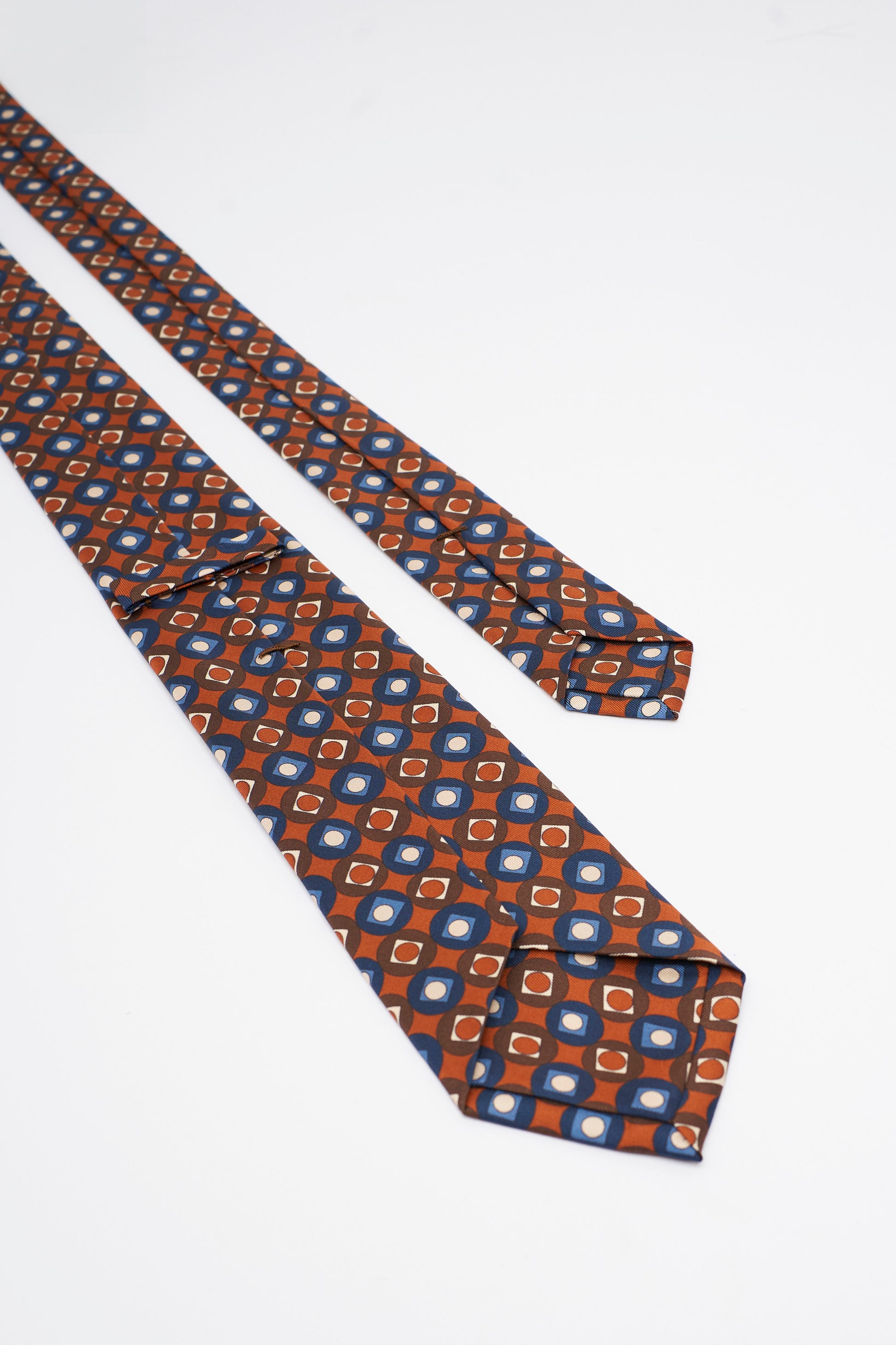 Questa cravatta sartoriale in pura seta di Como presenta un motivo vintage sui toni dell’arancione e blu che dona carattere e personalità al look. Le calde sfumature di arancione si combinano armoniosamente con il blu creando un accessorio unico e distintivo perfetto per chi ama uno stile retrò ma elegante. La lavorazione a 7 pieghe assicura struttura e durata mentre il filo di tensione garantisce una vestibilità impeccabile nel tempo.