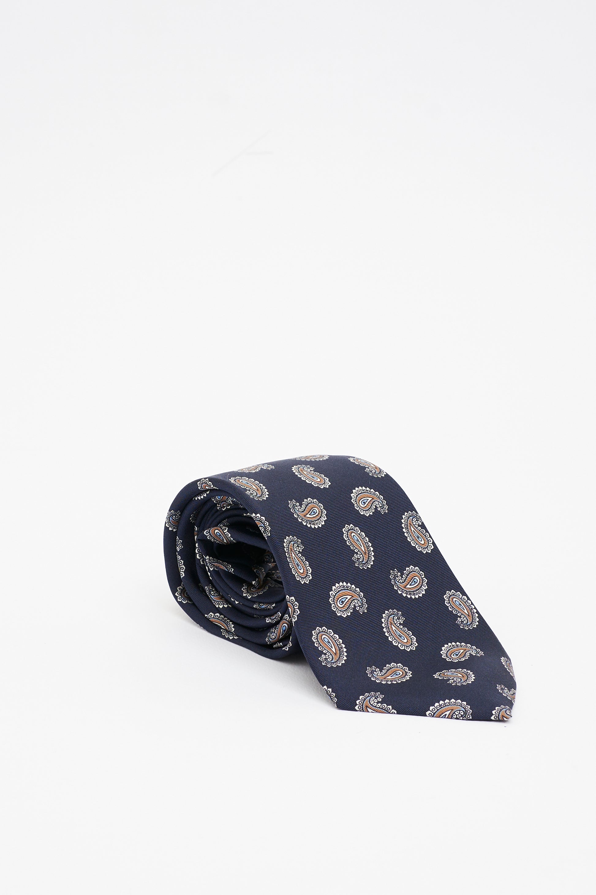Cravatta in Seta Blu Navy con Motivo Paisley